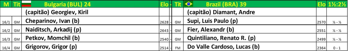 Continuação Torneios da FIDE 45ª Olimpíada de Xadrez da FIDE 2024 Rod 8 AF Carlos Carvalho 19 de setembro de 2024 Principal R1 R2 R3 R4 R5 R6 R7 R8 R9 R10 R11 45ª Olimpíada de Xadrez da FIDE 2024 8ª rodada – 19/09/2024 – 10:00h Brasil Absoluto rod 8 Bulgária 1,5 x 2,5 BRASIL PGN BRASIL ROD 8 PGN GERAL ROD 8 Viewver Chessbase.com – rod 8: Brasil Feminino rod 8 BRASIL 4 x 0 Angola PGN FEM-BRA-rod 8 PGN FEM GERAL Rod 8 Viewver Chessbase – Rod 8 Fem: Transmissões: Capivara subserviente do Xadrez AF Carlos Carvalho See author's posts Post navigation Previous: 45ª Olimpíada de Xadrez da FIDE 2024 Rod 7Next: 45ª Olimpíada de Xadrez da FIDE 2024 Rod 9 Deixe um comentário Cancelar respostaO seu endereço de e-mail não será publicado. Campos obrigatórios são marcados com *Comentário * Nome * E-mail * Site Salvar meus dados neste navegador para a próxima vez que eu comentar.