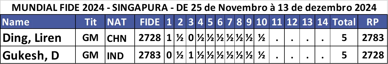 A 11ª partida começa no domingo, 8 de dezembro, às 06:00 de Brasília / 09:00 de Lisboa / 17:00 no horário local de Singapura.