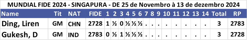 Ding e Gukesh empatam a partida 6 do Campeonato Mundial de Xadrez