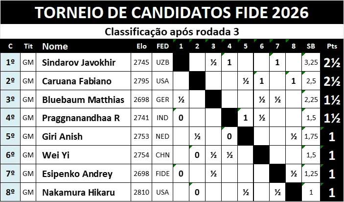 Resumo dos Candidatos FIDE Rodada 3