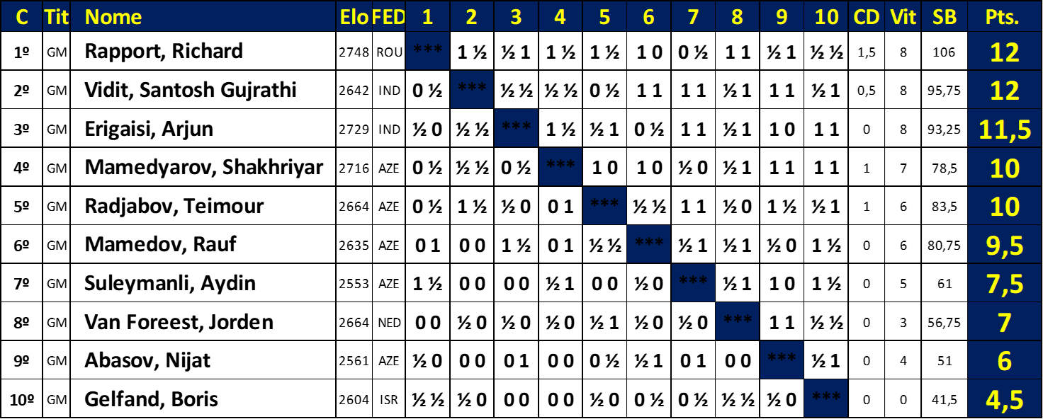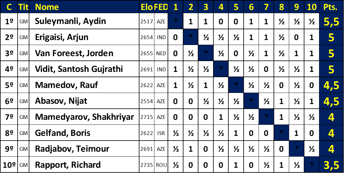 | Rk | Nome | Ti | FED | Rtg | 1 | 2 | Pontos |