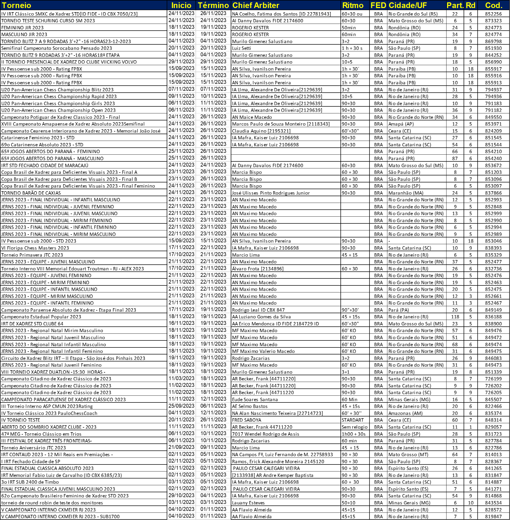 Torneios Brasileiros no Chess-Results período 01 a 30/11/2023: