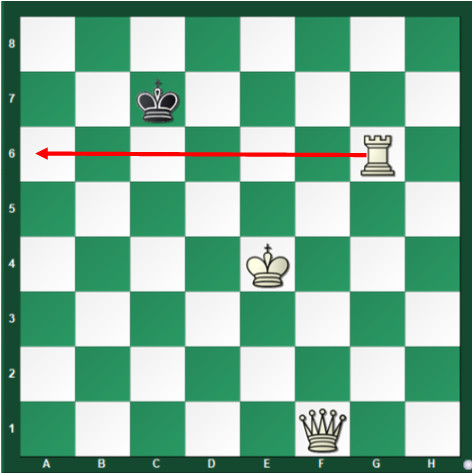 A linha da torre até a rainha (g6-a6) representa um campo de força imaginário pelo qual o rei do negro não pode passar.