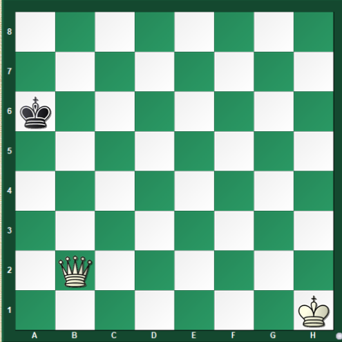 Aqui temos o milagre que foi prometido na introdução desta seção. O Rei do Preto controla a praça rainha e o peão da torre está no 7º posto. Por incrível que pareça, o Branco não tem como fazer o chato Rei preto sair dos quadrados h8 ou g7!