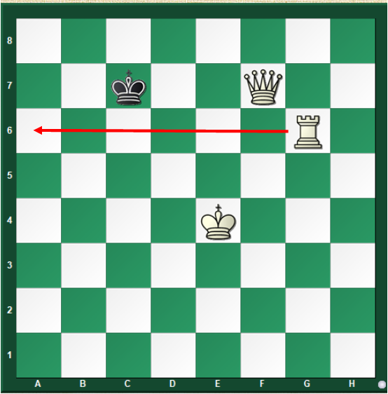 A linha da torre até a rainha (g6-a6) representa um campo de força imaginário pelo qual o rei do negro não pode passar.