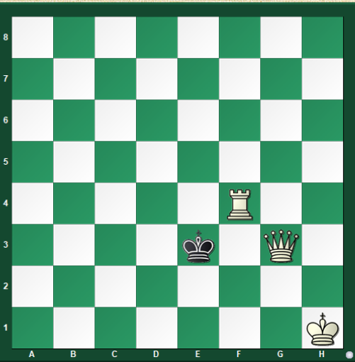 LEMBRE-SE: Cuidado com a sua Torre, ao contrário das duas Rainhas, o Rei Negro pode se aproximar dela pela diagonal e capturá-la.