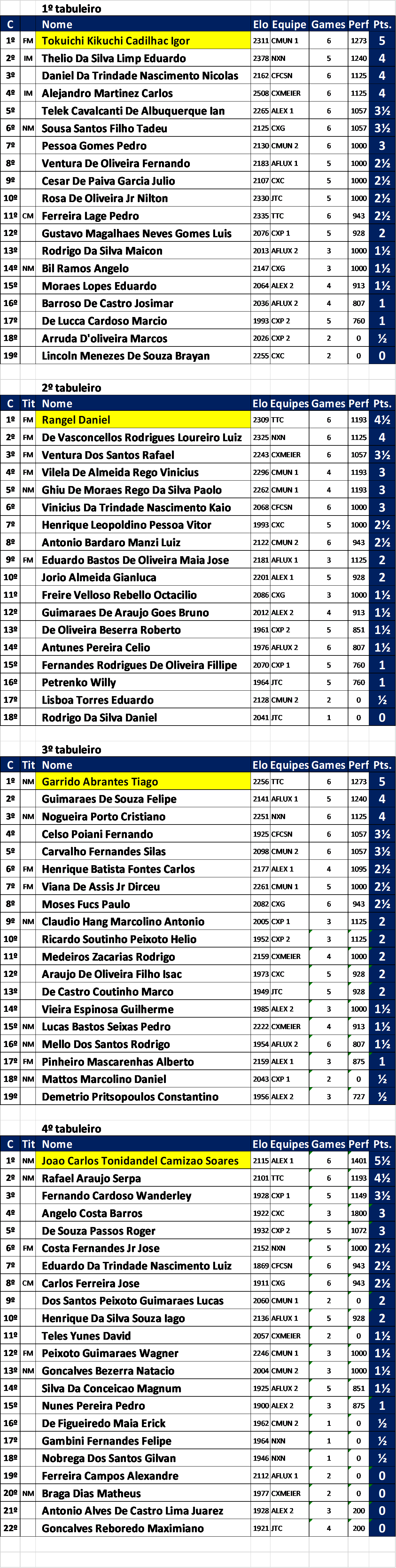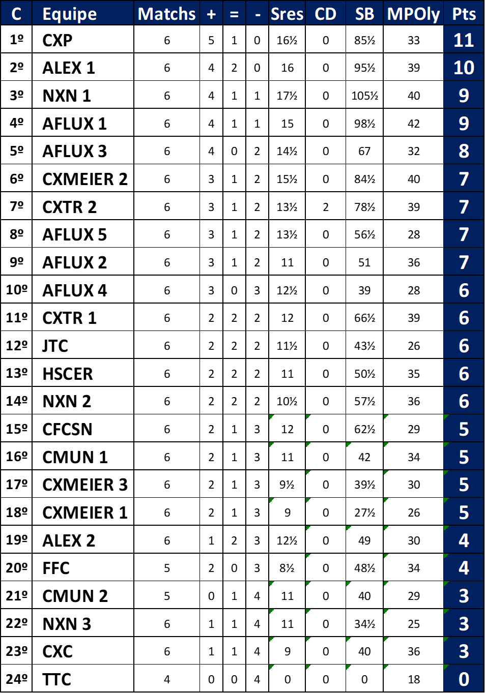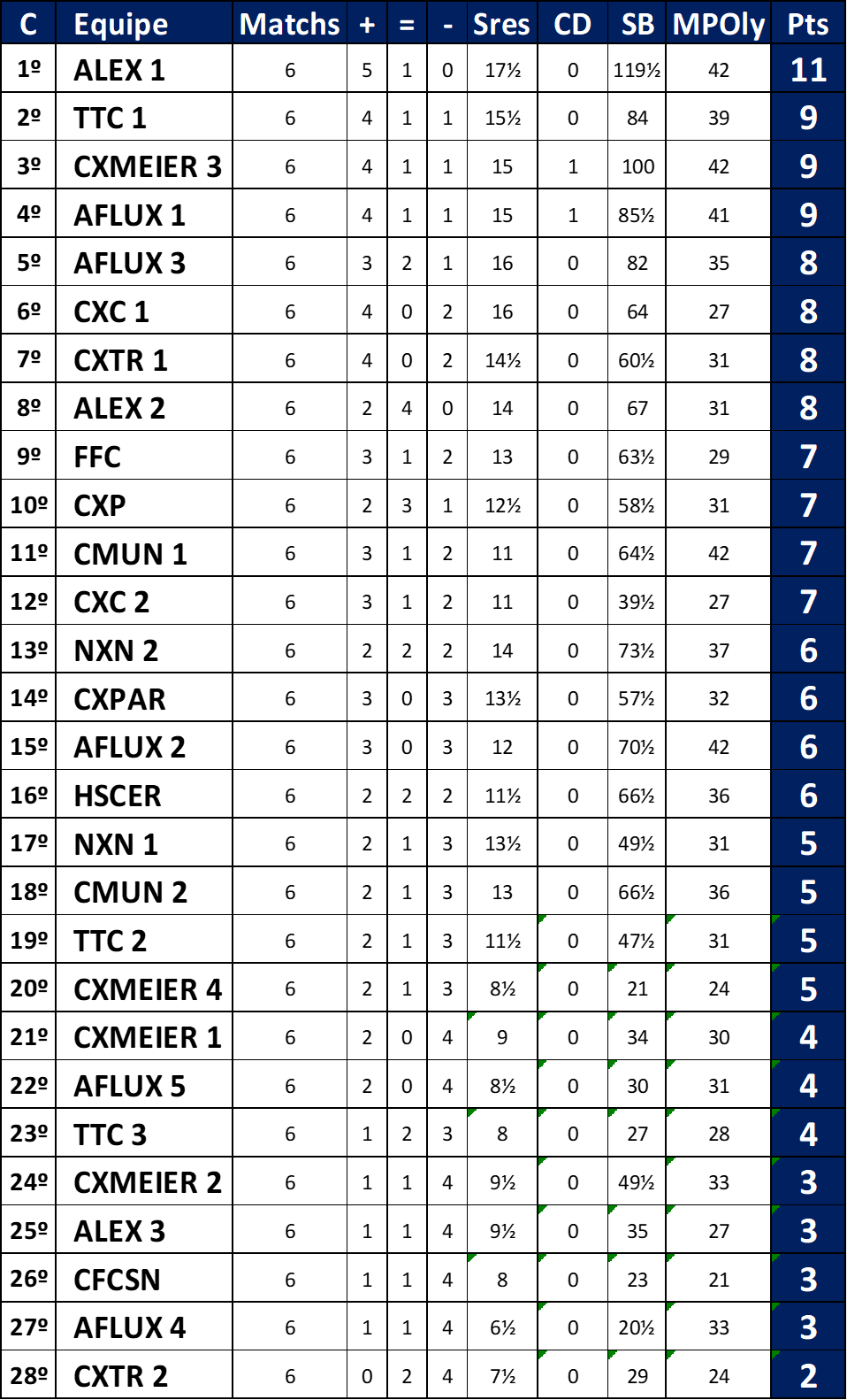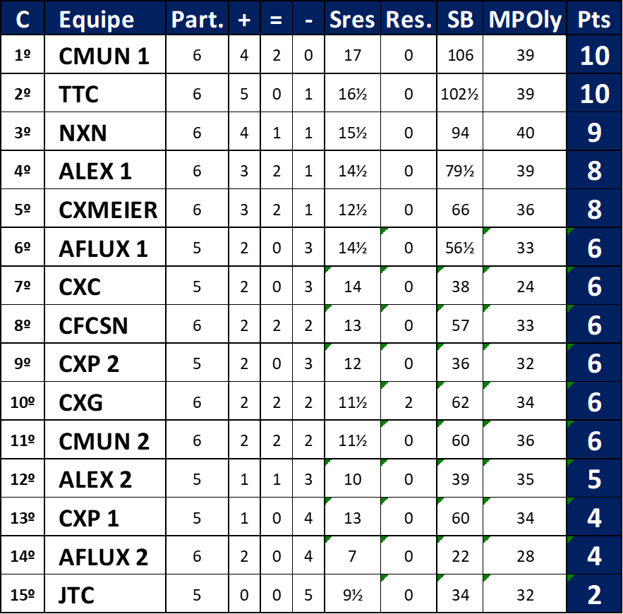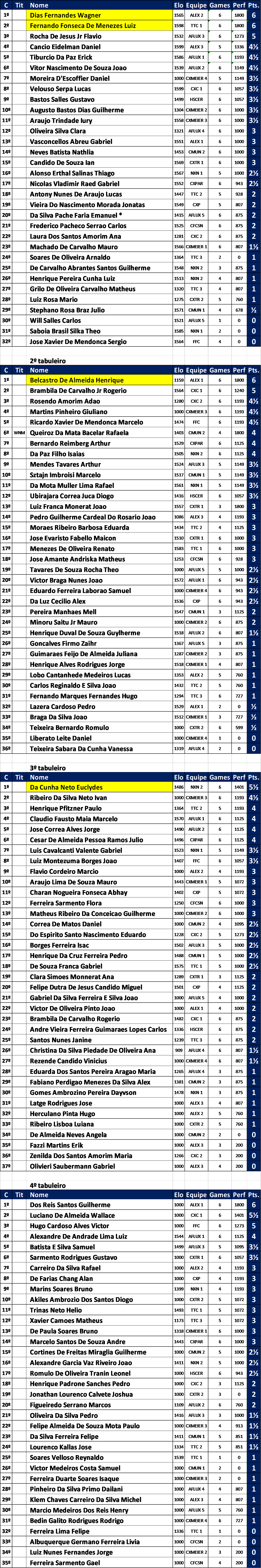 Obs.: Somente equipes que participaram nas 3 categorias.
