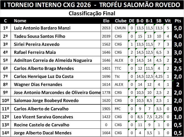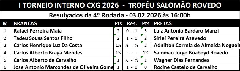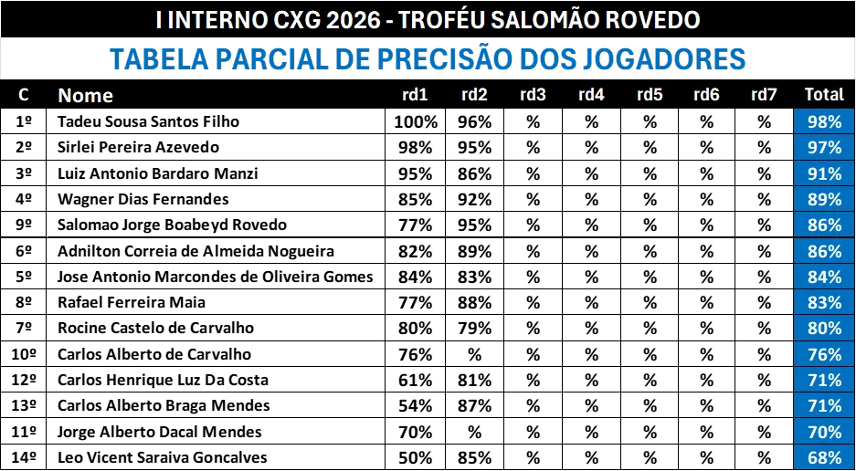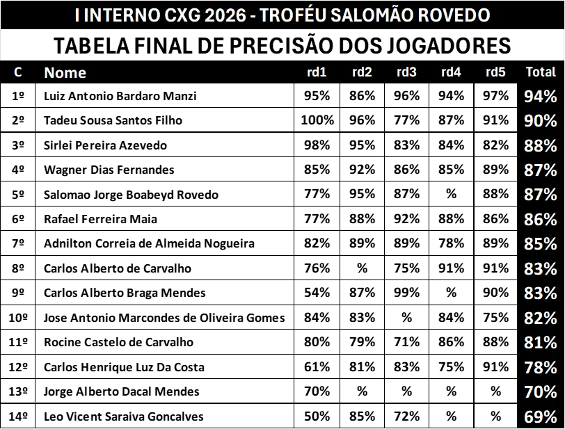 (Baseados nas partidas do I Torneio Interno CXG 2026)