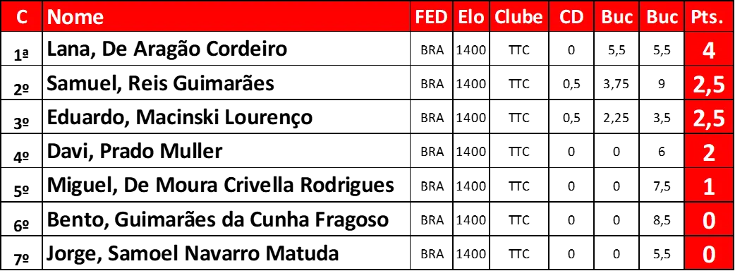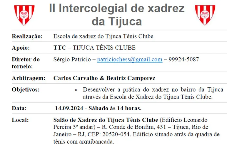 Torneios de Xadrez INTERCOLEGIAL TIJUCANO 2024 AF Carlos Carvalho 13 de setembro de 2024 Galeria de Fotos Regulamento SUB 8 CHESS-RESULTS : CLASSIFICAÇÃO FINAL: Cálculo de Rating Intercolegial: SUB 12 CHESS-RESULTS Classificação Final: Cálculo de rating Intercolegial: SUB 18 CHESS-RESULTS Classificaçaão Final: Cálculo de rating Intercolegial: Capivara subserviente do Xadrez AF Carlos Carvalho See author's posts Post navigation Previous: 45ª Olimpíada de Xadrez da FIDE 2024 Rod 2Next: 45ª Olimpíada de Xadrez da FIDE 2024 Rod 3 Deixe um comentário Cancelar respostaO seu endereço de e-mail não será publicado. Campos obrigatórios são marcados com *Comentário * Nome * E-mail * Site Salvar meus dados neste navegador para a próxima vez que eu comentar.