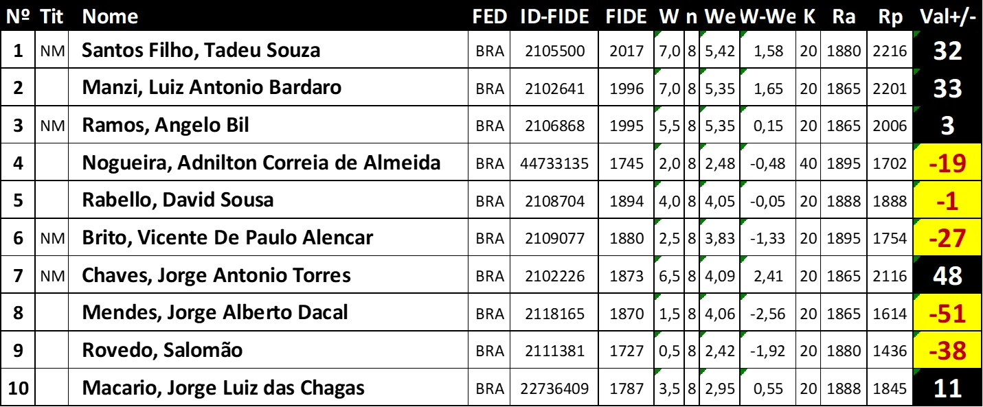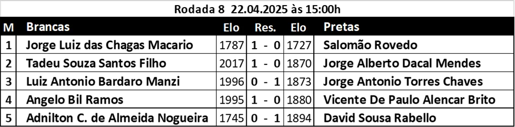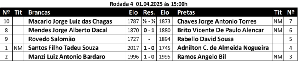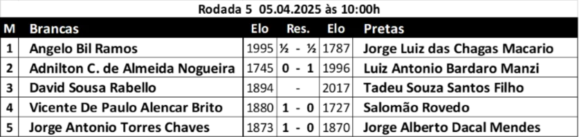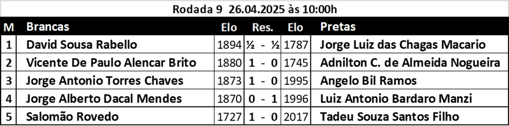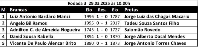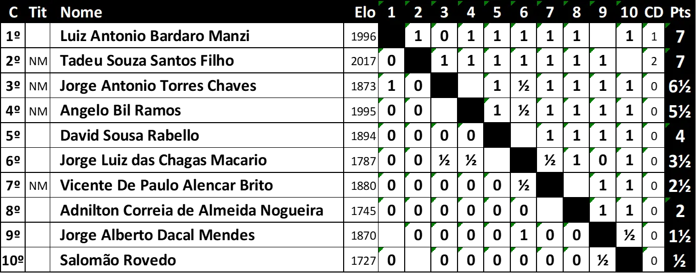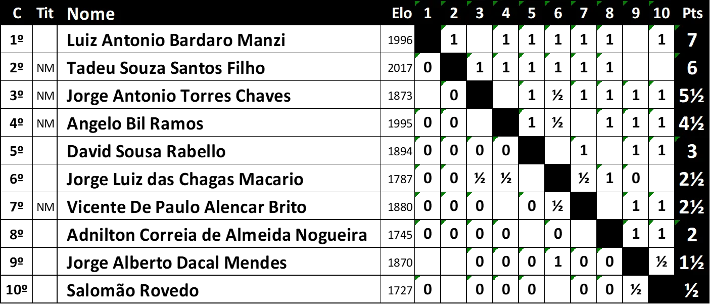 Arbitragem: | AF Carlos Alberto de Carvalho (carevchess@gmail.com) | ||||||||||||||||||