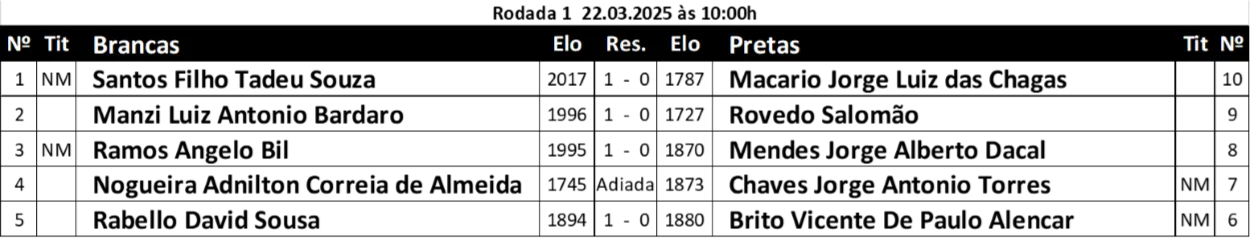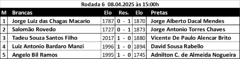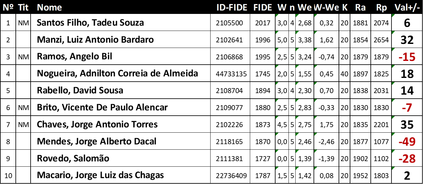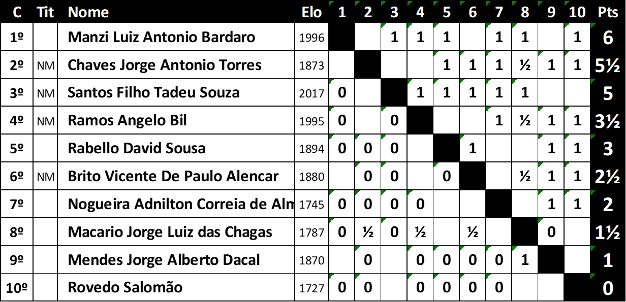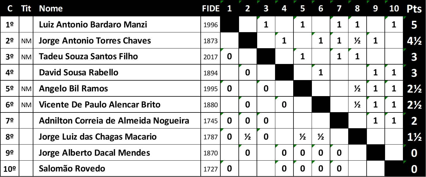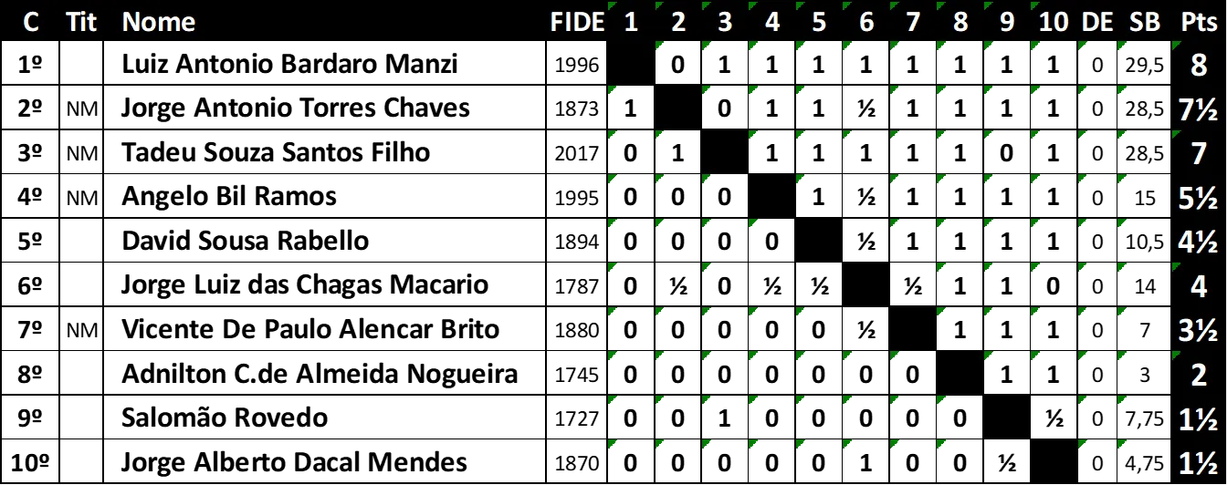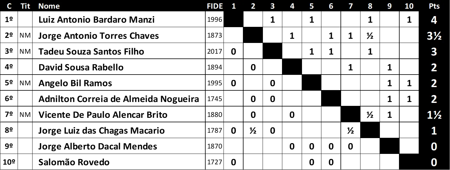 Arbitragem: | AF Carlos Alberto de Carvalho (carevchess@gmail.com) | ||||||||||||||||||