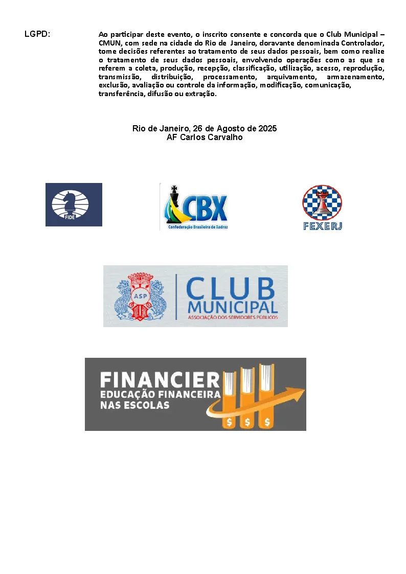Gratidão e reconhecimento Agradecemos imensamente aos clubes participantes, aos árbitros, à equipe organizadora e, claro, aos jogadores, que tornaram este evento possível. O Club Municipal reafirma seu compromisso com o desenvolvimento do xadrez e com a valorização dos talentos que fazem deste jogo uma arte.