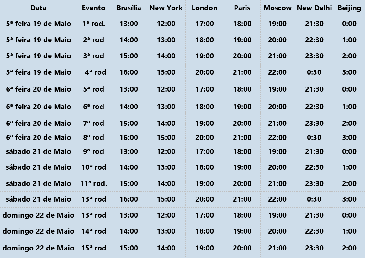 A ação será transmitida ao vivo com comentários do estúdio do Chess24 em Oslo através dos canais de Xadrez24.com no YouTube e Twitch, também disponíveis em chess24.com/tour. O jogo começa às 18:00 CEST / 16:00 UTC em 19 de maio.