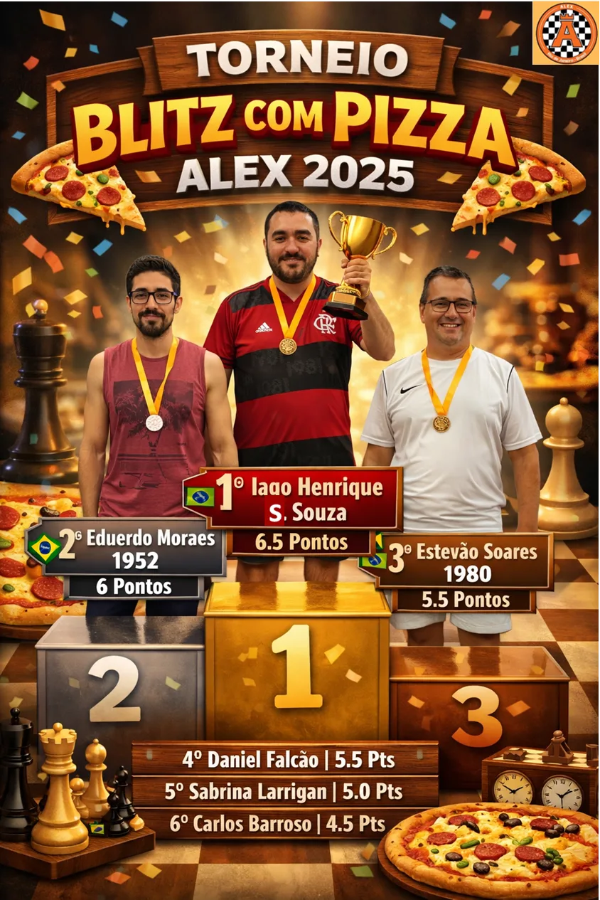 Olá, enxadristas! Que tarde memorável vivemos hoje! Entre uma fatia de pizza e um xeque-mate no apuro do relógio, o tabuleiro pegou fogo na ALEX!