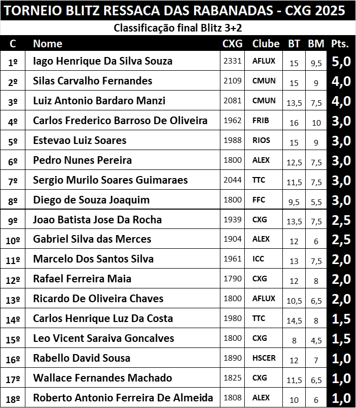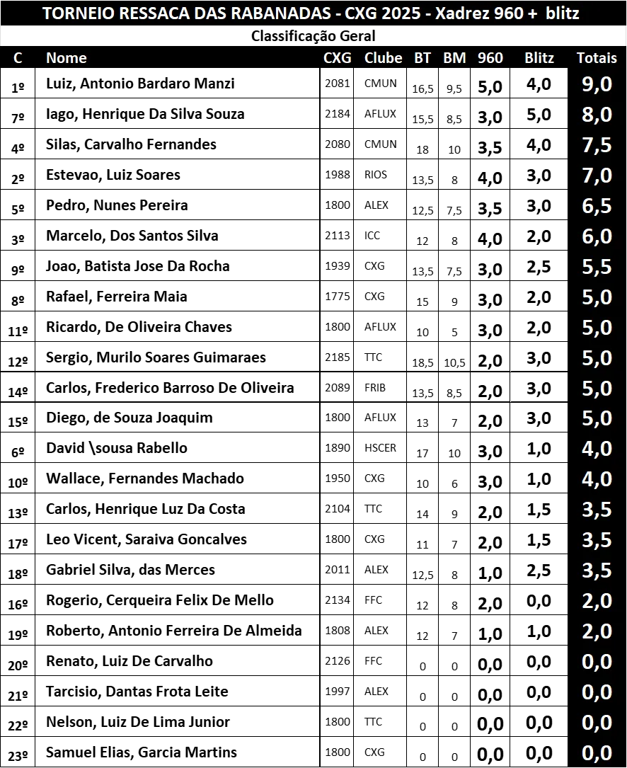 Chess 960 Recente Variedades RESSACA DAS RABANADAS – CXG 2025 AF Carlos Carvalho 29 de dezembro de 2025 1 minute readCHESS-RESULTS GALERIA DE FOTOS Capivara subserviente do Xadrez AF Carlos Carvalho See author's posts Post navigationPrevious: MEMORIAL EMILIANO CASTORNext: PIZZA E XADREZ – ALEX 2025Deixe um comentário Cancelar respostaO seu endereço de e-mail não será publicado. Campos obrigatórios são marcados com *Comentário *Nome * E-mail * Site Salvar meus dados neste navegador para a próxima vez que eu comentar.