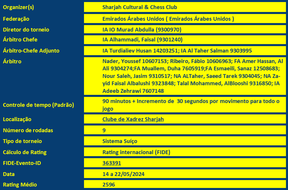 Torneio aberto a todos os jogadores classificados pela FIDE nas seguintes categorias de rating: