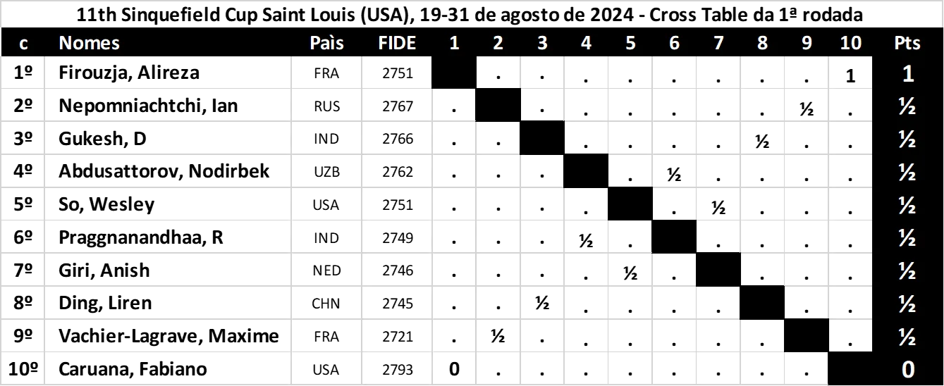 Sinquefield Cup 2024: Rodada 1 – Alireza Firouzja assume o comando