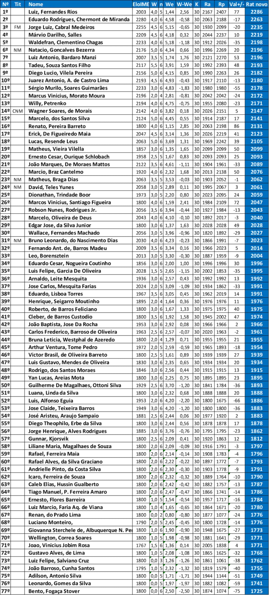 Os critérios de desempate serão os seguintes: 1. Confronto Direto [81] 2. Buchholz (parâmetros 9,1,N,S.0,N) [84] 3. Buchholz (parâmetros 0,0,N,S.0,N) [84] 4. Sonnemborg Berger [85] 5. Maior número de vitórias (0,P) [68]