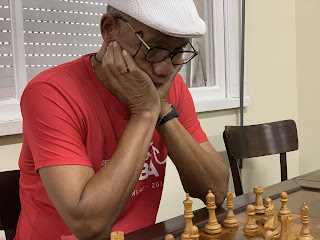 Caro Carlos Carvalho. Enquanto o Torneio de Natal CMIL de 2019, não chega, recordo o de 2018, do qual participei. Passando pela partida J. Claide T. Barros vs. J. Eudes de Oliveira vendo a posição após 30. Txe6, recordei uma partida de idêntica temática pela qual passei. Agora após 30. … Txg2+ a posição branca desmorona. Se 31. Rxg2 Dxd5+; Se 31. Dxg2 Tb1+. Mas o Eudes não viu…