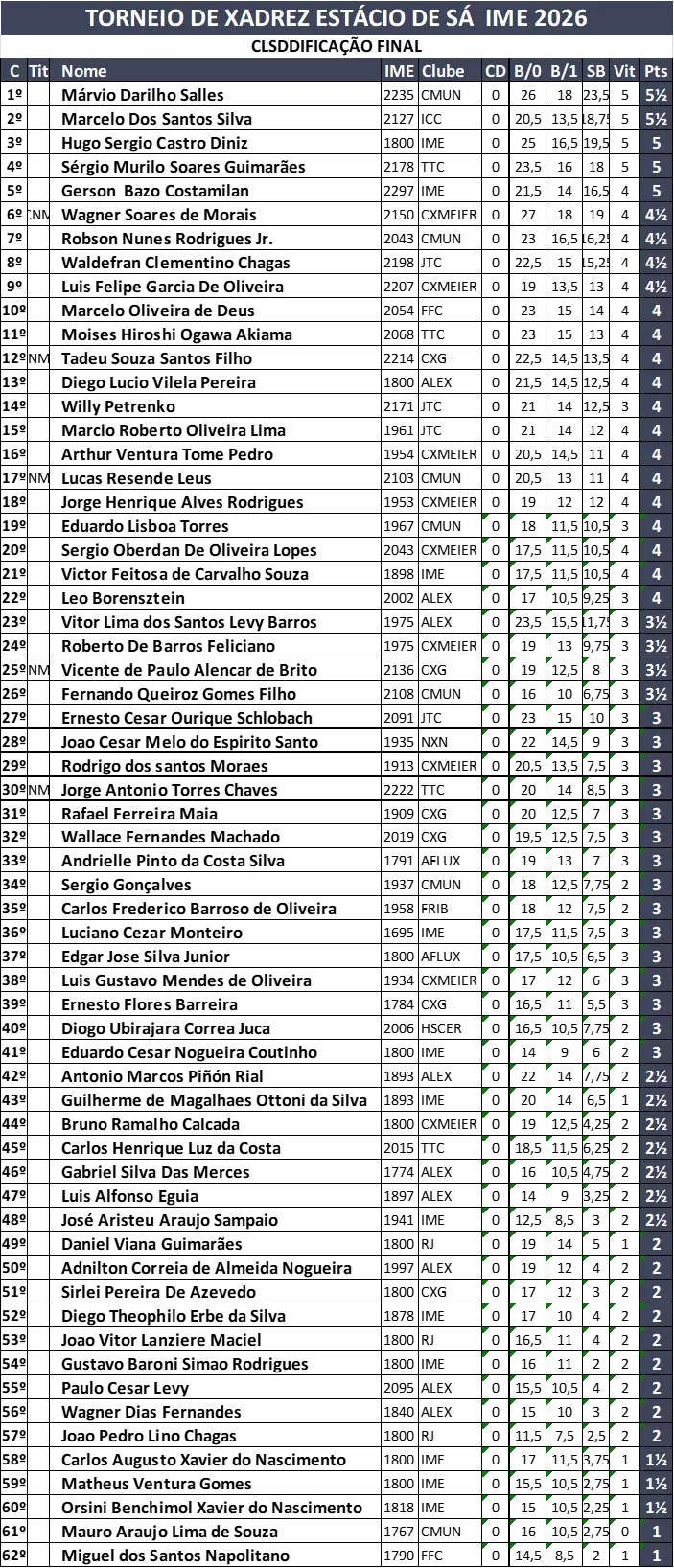 1 thought on “TORNEIO DE XADREZ ESTACIO DE SA – IME 2026